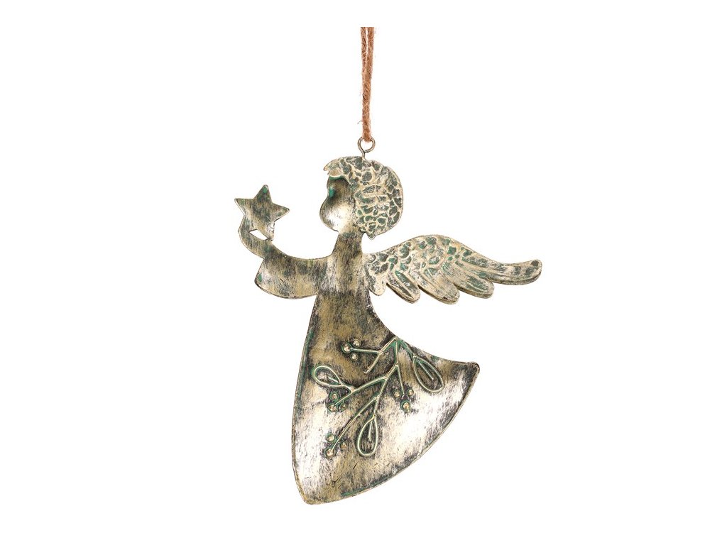 Anděl kovový s hvězdou závěsný, M, barva zlatá antik