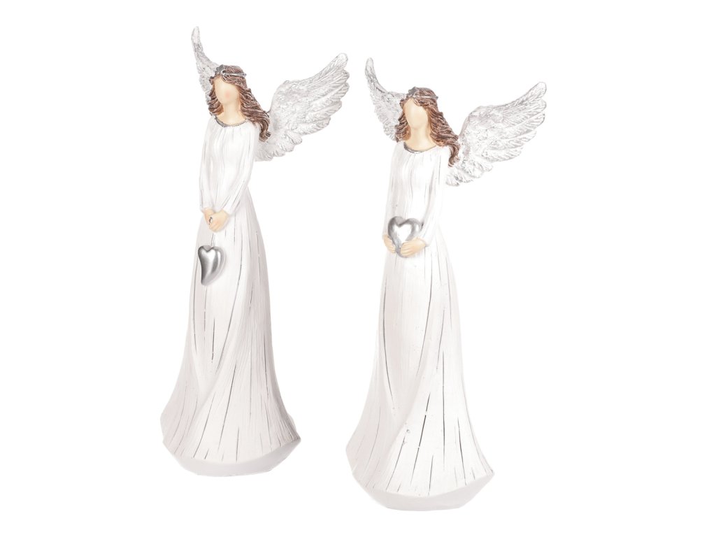 Anděl se srdcem polyresin, bílý, MIX, cena za 1 ks