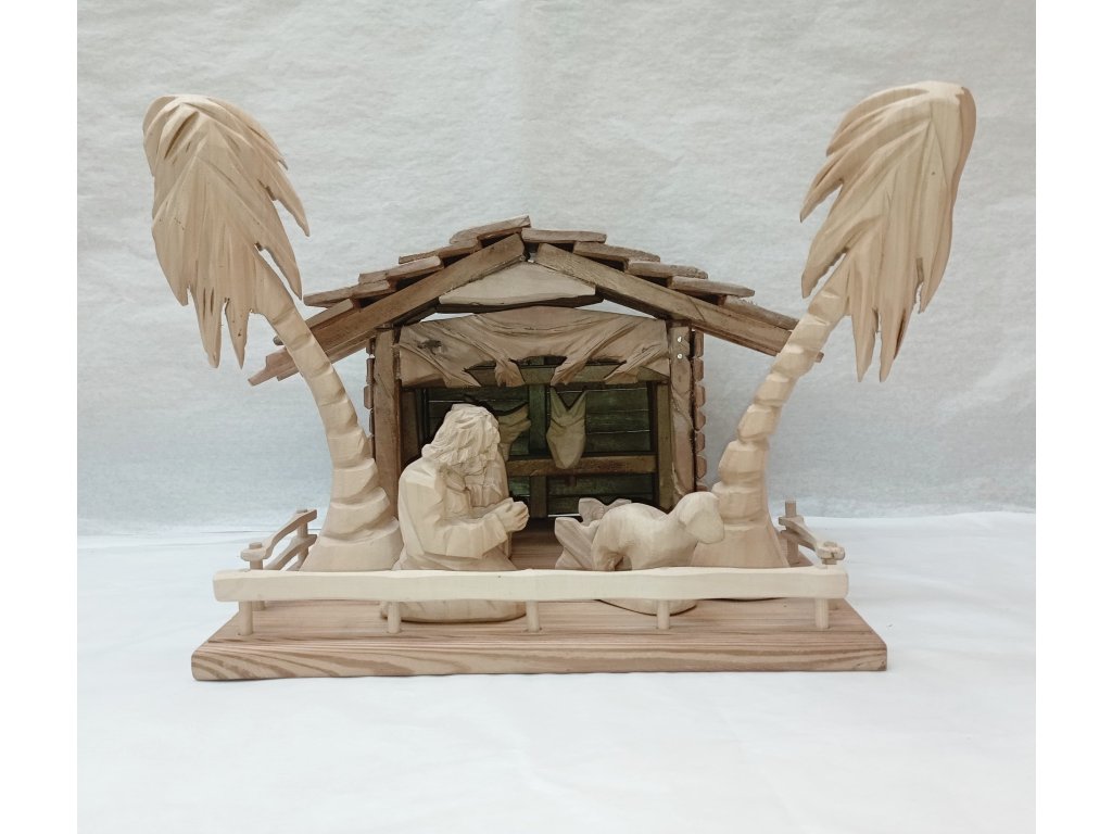 BETLÉM DŮM S PALMIČKAMA DŘEVO NELAKOVANÉ