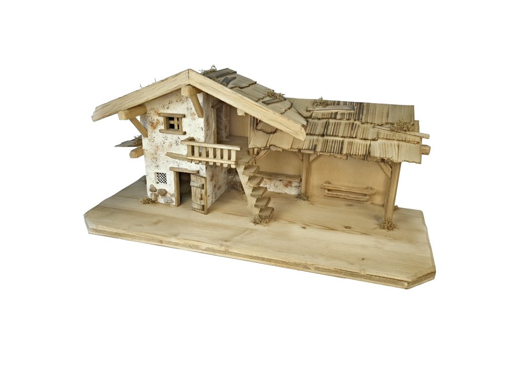 Betlém dům, bílá stavba patrová kamenná, podstava dřevo schody do patra