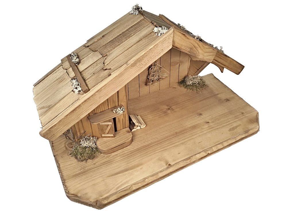 Betlém dům, malý, opálená střecha + dřevenné špalky