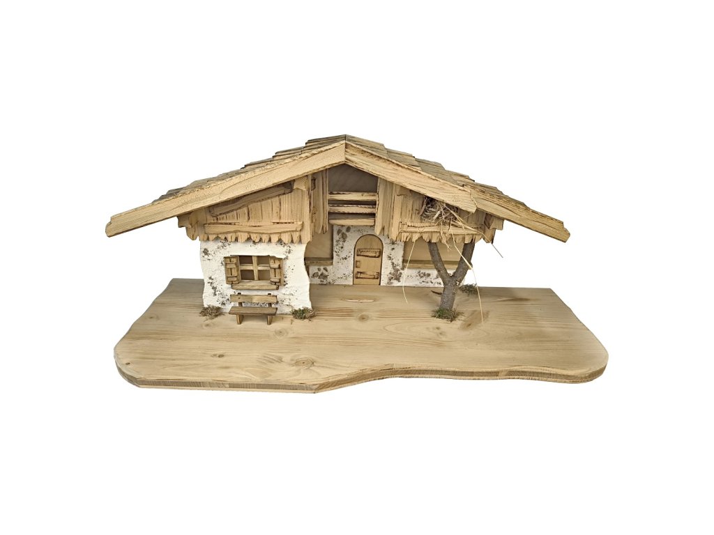 Betlém dům, s dřevěnou větví, bílá zeď, dřevěná střecha