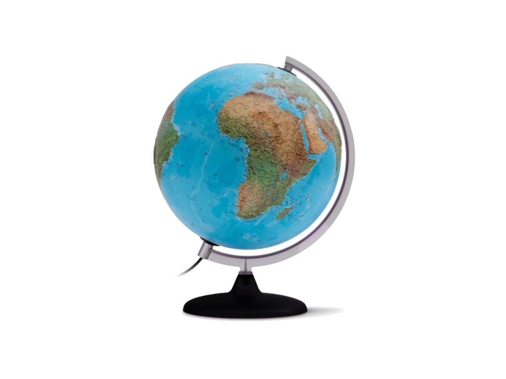 Plastické zobrazení zemského povrchu dává lepší přehled o rozložení a velikosti pohoří na naší planetě. Rozsvícený globus - politické zobrazení: jednotlivé země jsou barevně rozlišeny, na mapě jsou větší města, teplé a studené mořské proudy. Zhasnutý globus - zeměpisné zobrazení: na mapě jsou zvýrazněny hory, údolí, nížiny, roviny, mořské příkopy, teplé a studené mořské proudy.Buďte první, kdo napíše příspěvek k této položce.