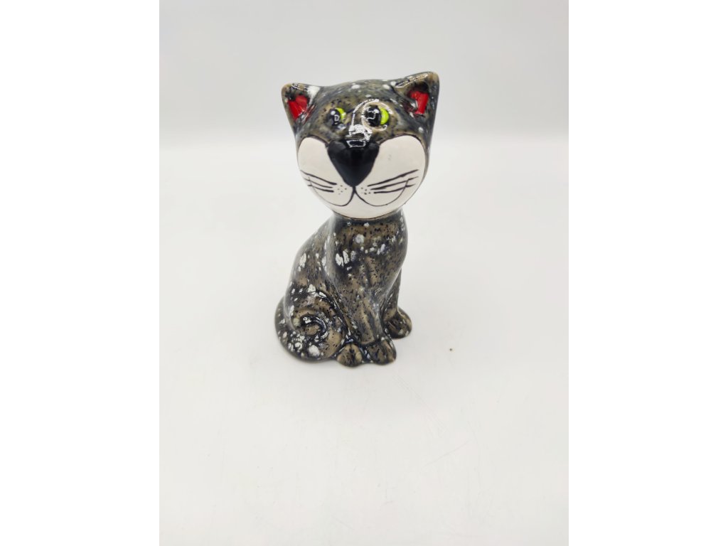Kočka sedící, 14cm, šedobílá
