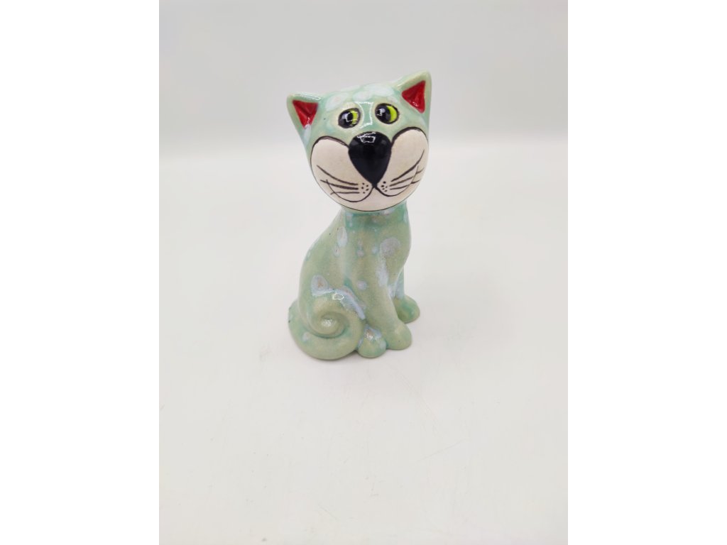 Kočka sedící, světle zelená, 14cm, 1250°C