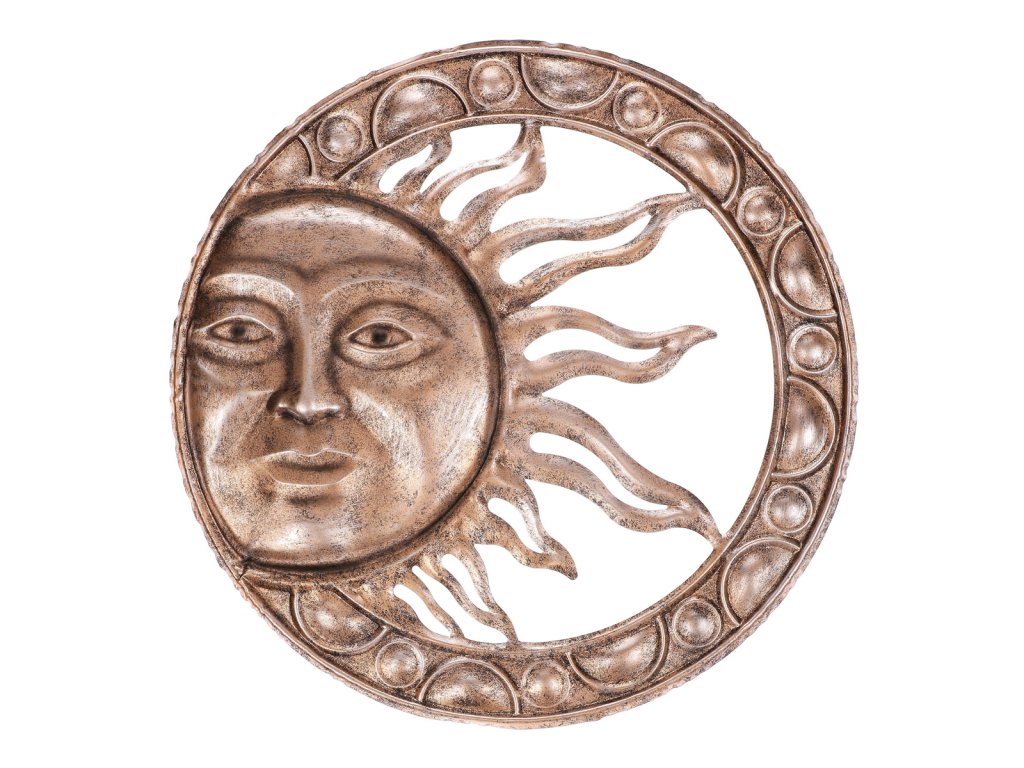 SLUNCE S KRUHEM - KOVOVÁ NÁSTĚNNÁ DEKORACE, MĚDĚNO-STŘÍBRNÁ