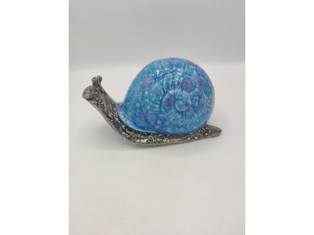 Šnek kulatý domek, střední, 23cm, TV modrý, žlutě kropenatý