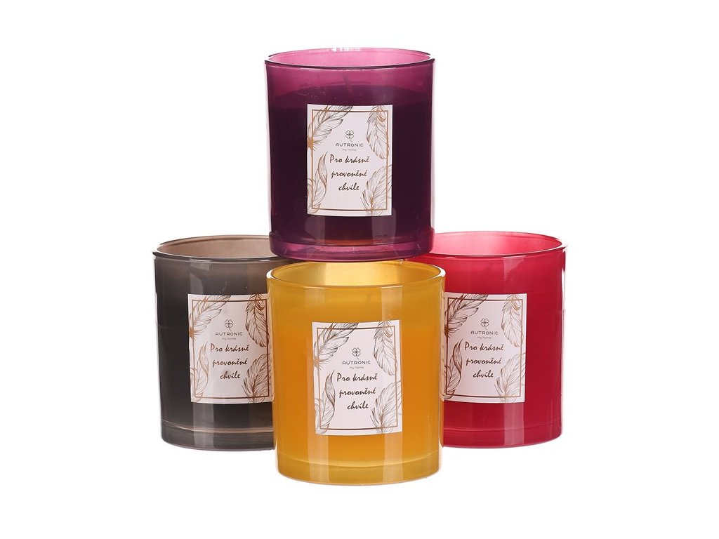 SVÍČKA AROMATICKÁ VE SKLE - VEL. M, MIX 4 BAREV A VŮNÍ, PARAFÍN, CENA ZA 1 KS.