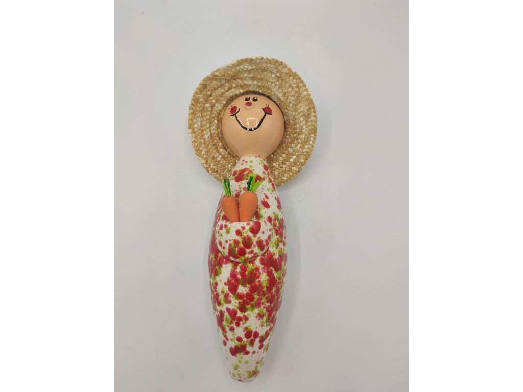Zahradník na tyči, 30cm slaměný klobouk, bílo-červený